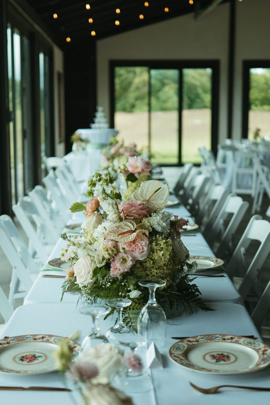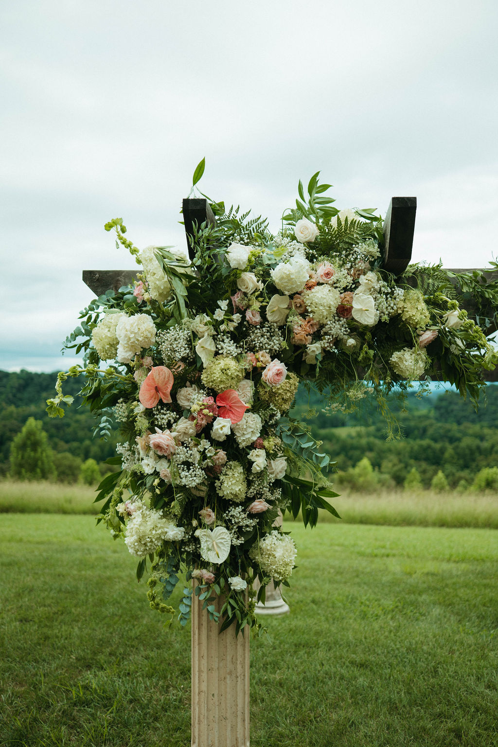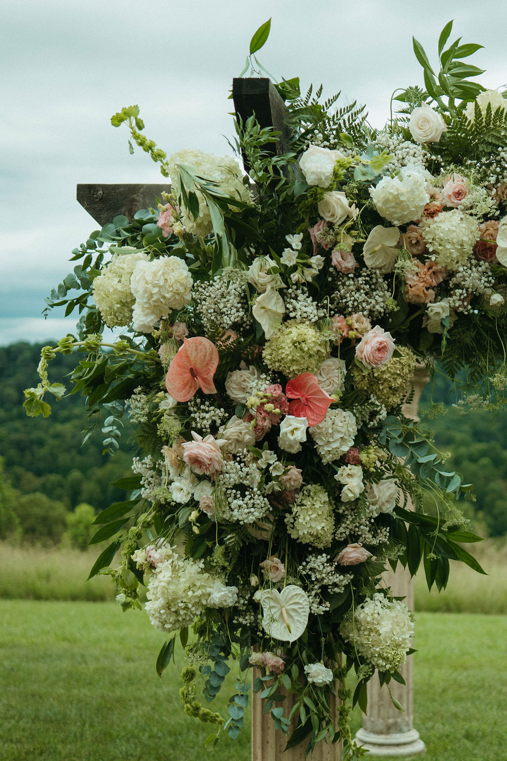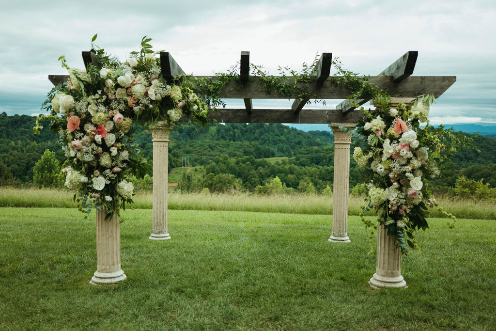 We loved designing all of these wedding florals at the beautiful Chateau Selah! The modern wedding florals of the anthurium flowers with the historic Chateau views really took this wedding design to the next level.
